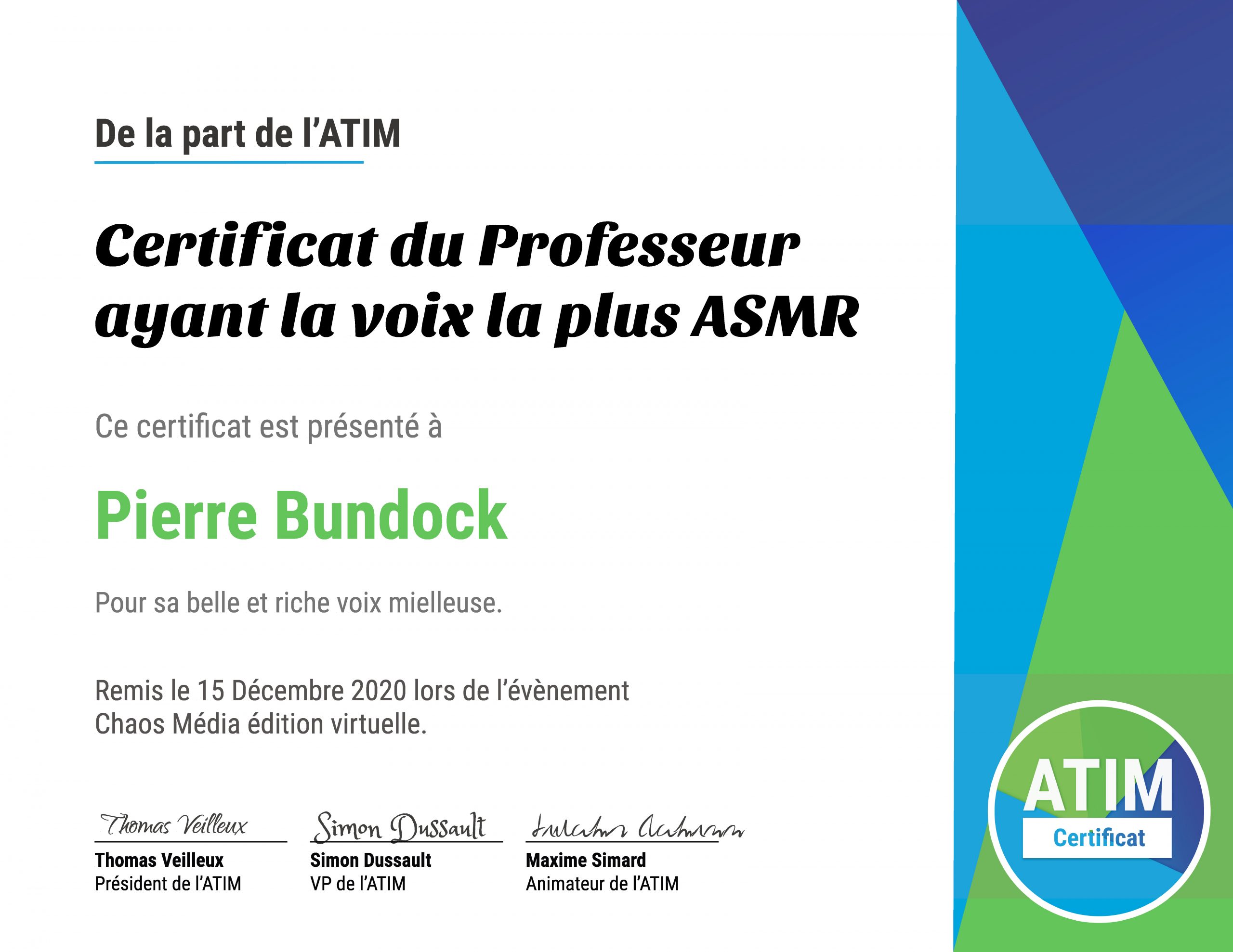 - Kid Kodak (participation en vidéoconférence), remis par Sylvain Lambert: Shaun Chatel