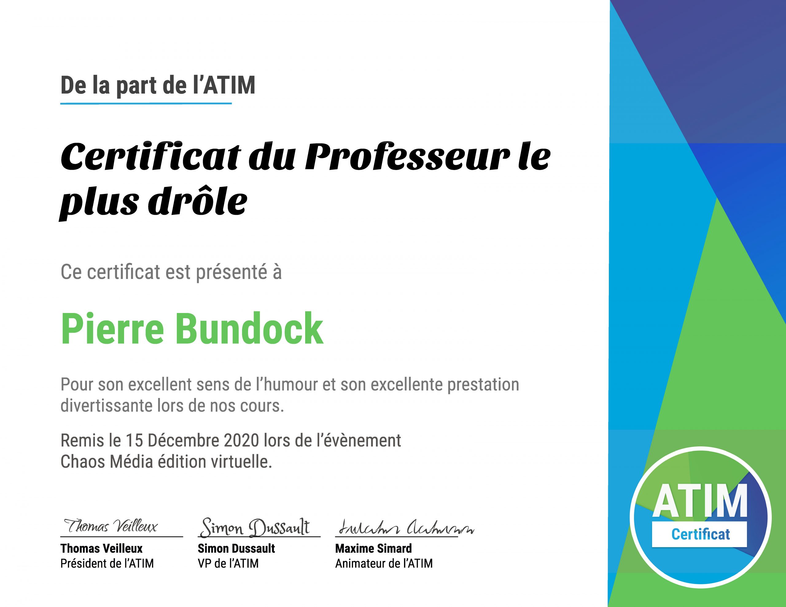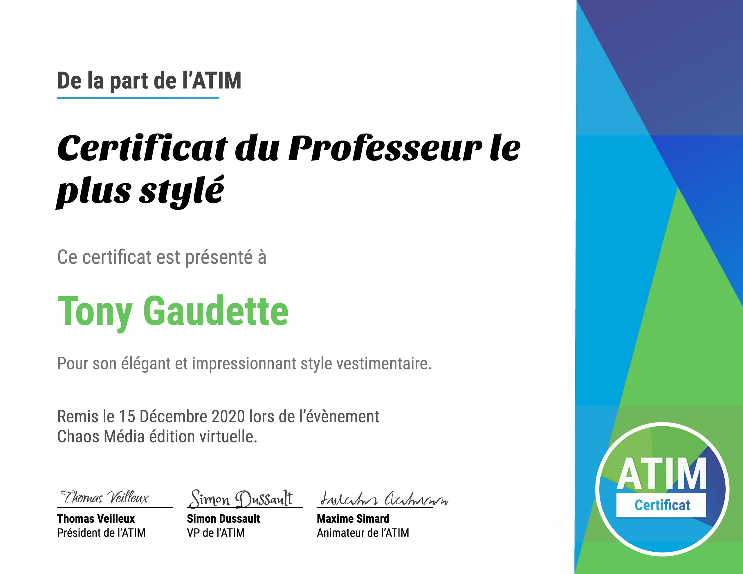 - Idole de l’intégration (HTML et CSS), remis par Jean-François Leblanc: Simon Dussault