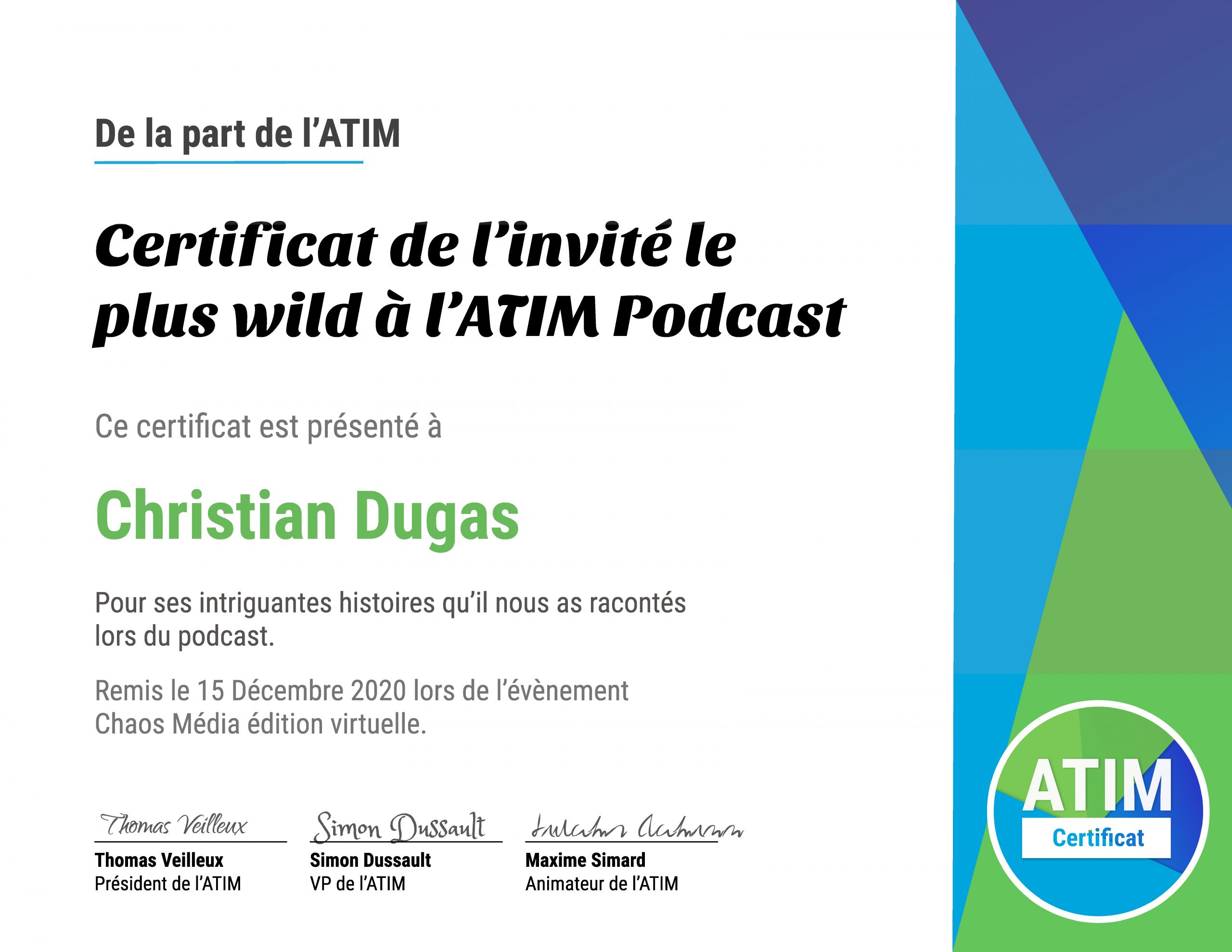 - L’invité le plus wild (ATIM podcast): Christian Dugas