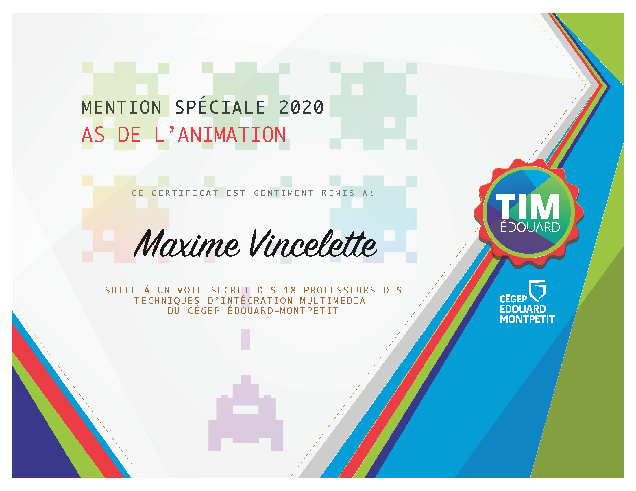 - As de l’animation, remis par Mika Carbonneau: Maxime Vincelette