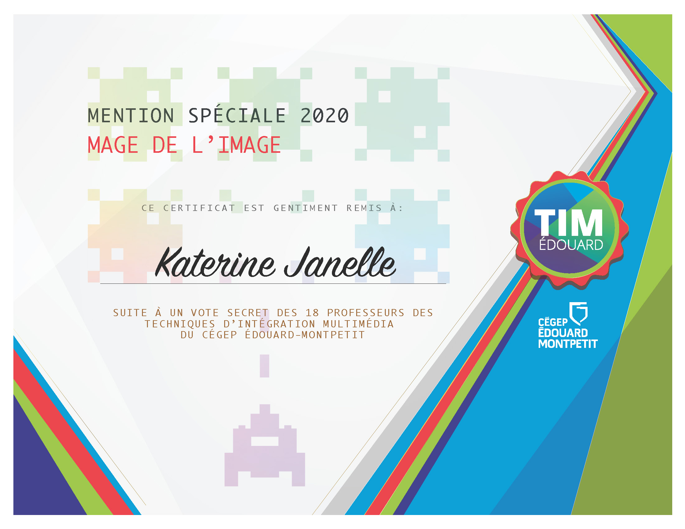 - Mage de l’image (traitement de l’image), remis par Samuel Tremblay: Katerine Janelle