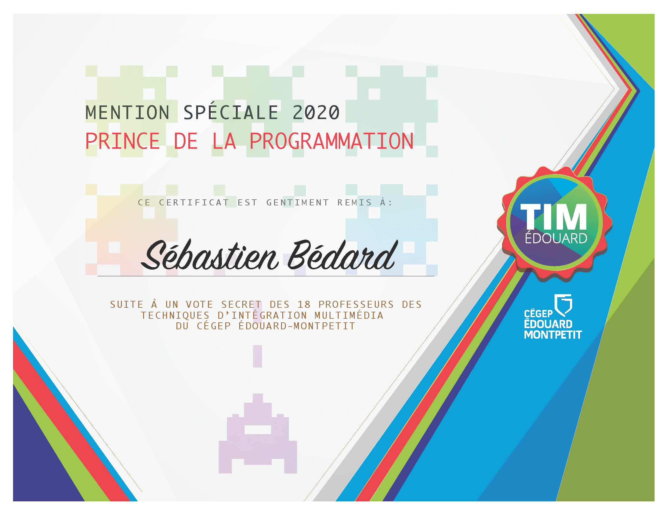 - Prince de la programmation, remis par Léa Kelly: Sébastien Bédard