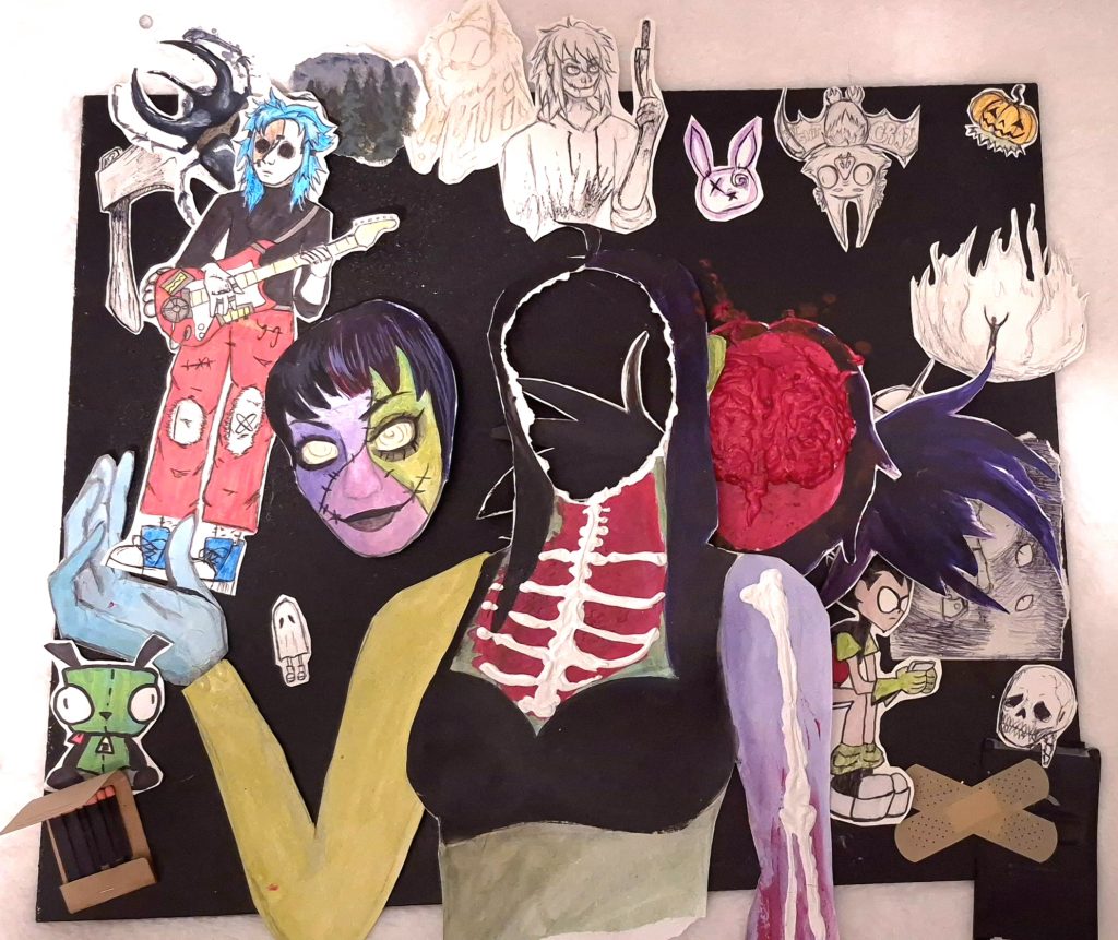Collage de plusieurs doodles / projet moodboard de ce que j’aime. Certains doodles manquent à l’appel, mais cette oeuvre n’a ni début ni fin, alors ça l’importe peu.